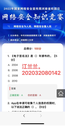 同时,为深入学习宣传贯彻习近平总书记关于网络强国的重要思想,教育厅举办了网络安全知识竞赛,世俱杯买球官网网站组织2020级和2021级全体同学参加网络安全竞赛答题活动,并圆满完成答题任务。