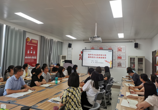 2022年09月13日下午,世俱杯买球官网网站党总支组织全体教师在办公楼516党员活动室学习“十大战略”系列课程之《保护传承弘扬黄河文化 加快建设文化旅游强省》,本次学习采用线上、线下相结合形式进行,旨在加快文化旅游强省建设步伐,推动传统文化的创造性转化和创新性发展,使全体教师坚定文化自信,会议由学院党总支书记马春燕主持。