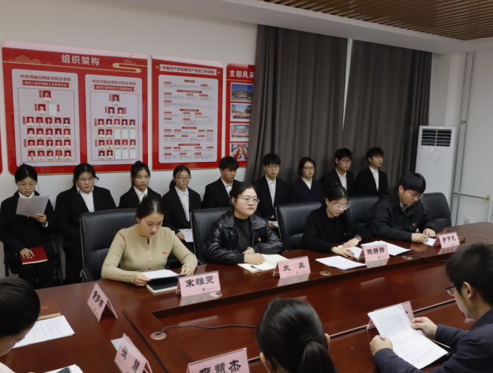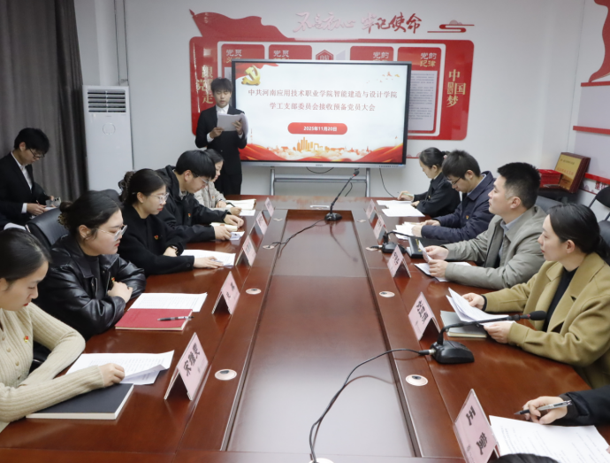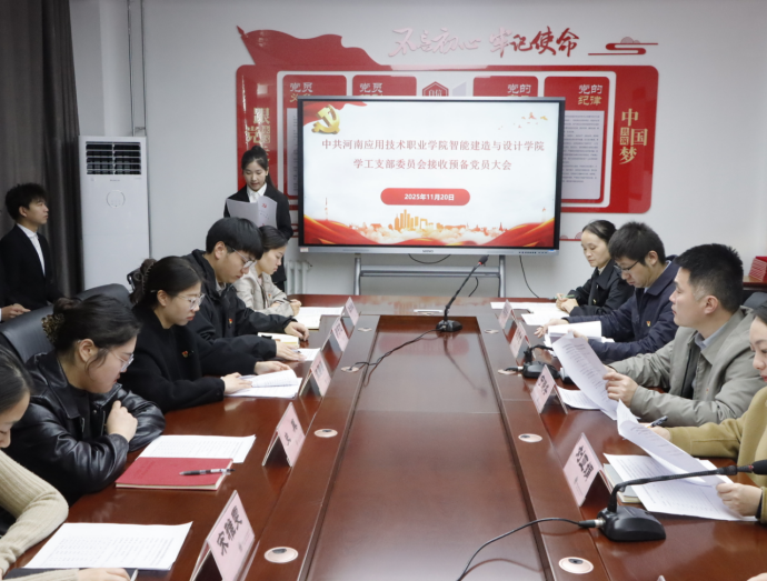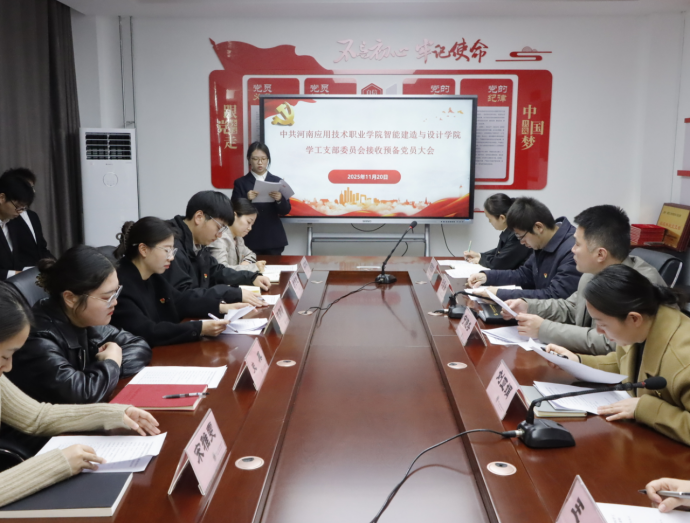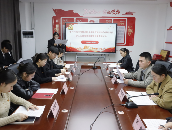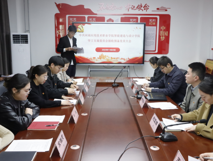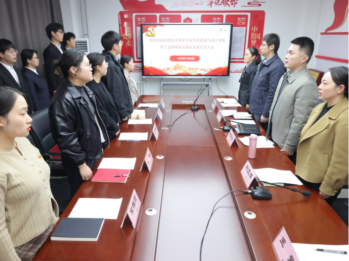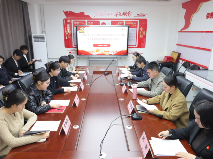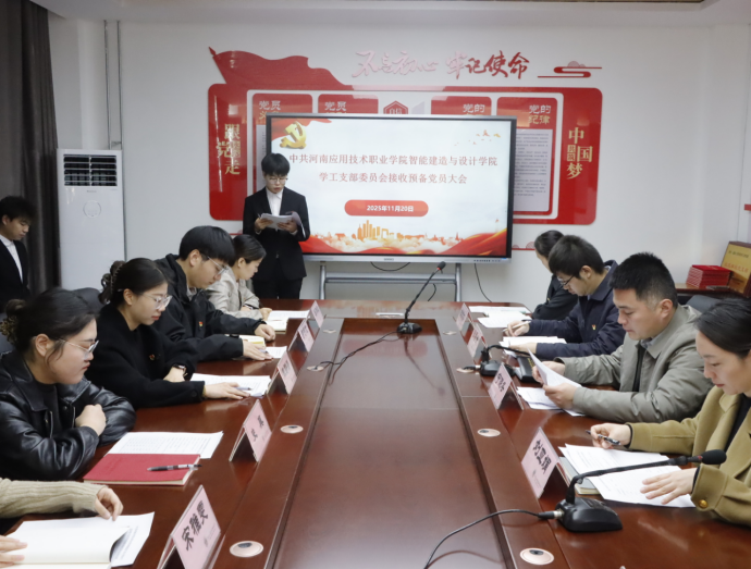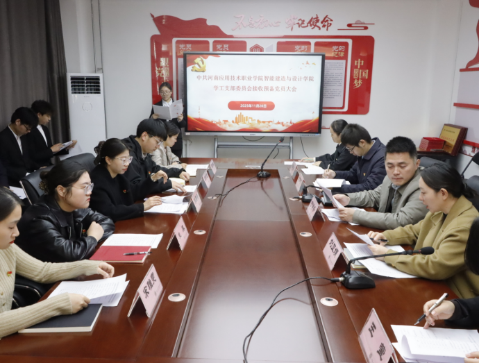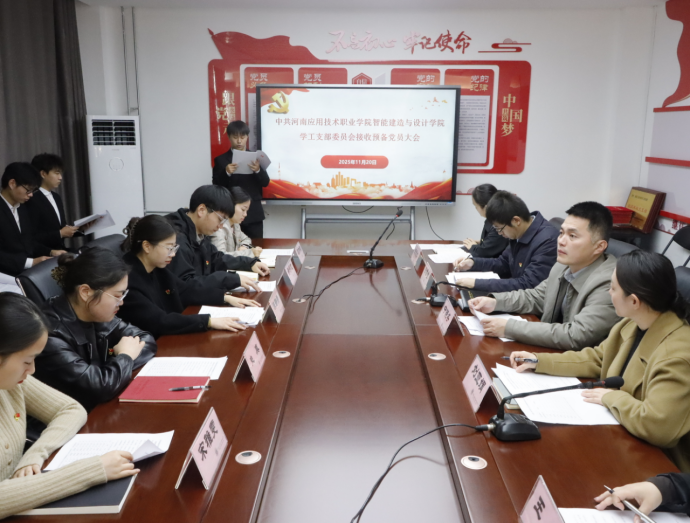 为扎实推进党员发展工作,严格把控党员发展“入口关”,优化党员队伍结构,2025年11月20日上午,智能建造与设计学院学工党支部在开封校区办公楼B417党建活动室隆重召开接收预备党员大会。会议由支部书记刘亚娟主持,学工党支部全体党员教师、王文凯、夏振洋等9名发展对象共同参会。