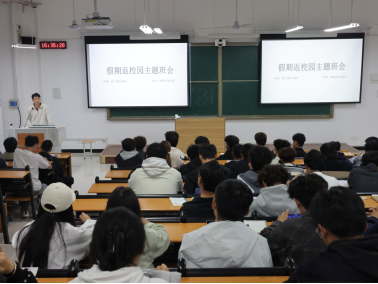 待学生顺利返校后,各班随即召开主题班会。班会上,辅导员结合初步的返校数据通报学生到校情况,通过案例分析强调宿舍用电安全、消防规范等注意事项;针对“假期综合症”,引导学生制定新学期作息计划,以饱满状态投入校园生活。