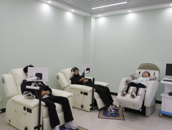 活动中,心理健康中心教师以“认识心理资源,学会自我关怀”为主题,带领学生依次参观了接待咨询室、情绪疏导室、团体辅导室及放松训练室。在情绪疏导室,教师详细介绍了沙盘游戏、情绪宣泄设备的使用方法,“通过沙具摆放梳理内心困惑,借助安全宣泄释放压力,这些都是帮助大家调节情绪的实用方式”;在放松训练室,学生们现场体验了生物反馈放松椅、正念冥想设备,亲身感受专业工具带来的身心舒缓效果。
