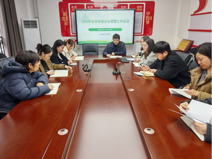 2026年2月27日,智能建造与设计学院召开春季学期第一次学生管理工作会议。党总支副书记张蓄金、学工办主任史真、团总支书记王莹出席会议,全体专兼职辅导员参加会议。会议由张蓄金主持。