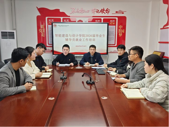 为进一步精准助力学生实现升学目标,2026年3月10日,智能建造与设计学院召开专升本工作专题研讨会。学院党总支书记宁晓冬,副书记张蓄金、学工办主任史真,专升本专员李希望及23级辅导员参加会议。
