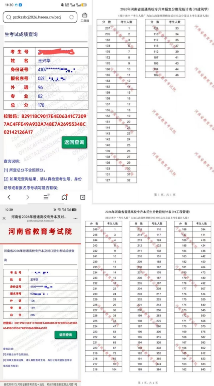 在2026年河南省普通高校专升本考试中,智能建造与设计学院学子锐意进取、奋勇拼搏,交出了一份令人瞩目的答卷!学院共有306名学生报名参加专升本考试,特别值得庆贺的是,我院学子王子琪以总分245分(外语126分、专业119分)的优异成绩,斩获建筑学专业全省第二名;杨芮以232分、孙庆波以228分、王兴华以178分的高分,均位列全省前列。
