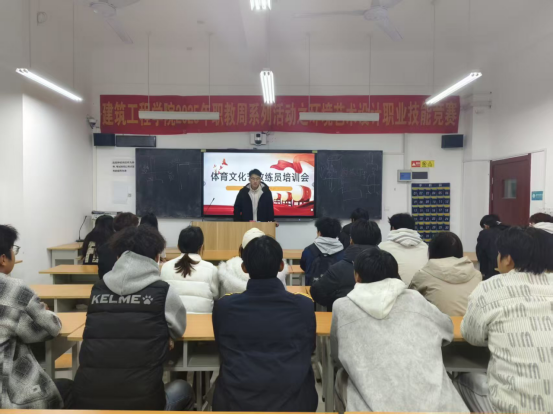当镜头聚焦赛场,捕捉的不仅是运动瞬间的精彩,更是备战背后的智慧。为确保体育文化月的顺利进行,2025年10月23日,智能建造与设计学院在F113开展教练员培训安全会议,李希望老师在培训会上给大家讲解专项训练并做安全动员。