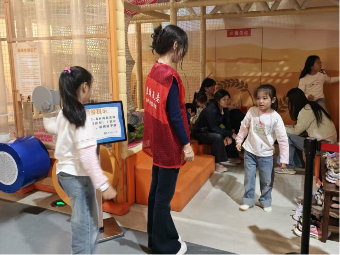 活动中,志愿者们分工协作、各尽其责,有序开展秩序维护、操作指导、安全陪护等工作。面对孩子们好奇的提问,志愿者们温柔耐心解答;看到小朋友操作装置遇到困难,志愿者们手把手引导演示,将科学知识融入趣味体验;同时时刻关注现场情况,细心守护孩子们的游玩安全,让他们能在轻松的氛围中感受科学魅力,在玩乐中爱上探索。
